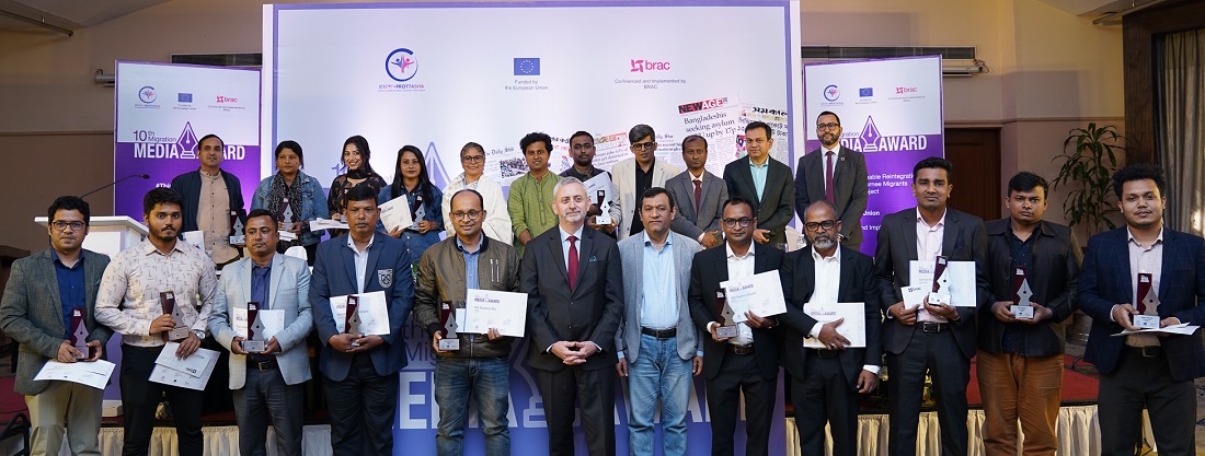 অভিবাসন খাতে অনুসন্ধানী ও দায়িত্বশীল সাংবাদিকতায় অবদানের স্বীকৃতি হিসেবে মাইগ্রেশন মিডিয়া অ্যাওয়ার্ড ২০২৫ পেয়েছেন ১৮ জন সাংবাদিক। আন্তর্জাতিক অভিবাসী দিবস উপলক্ষে বৃহস্পতিবার রাজধানী ঢাকার একটি হোটেলে আয়োজিত অনুষ্ঠানে প্রধান অতিথি হিসেবে বিজয়ীদের হাতে পুরস্কার তুলে দেন বাংলাদেশে ইউরোপীয় ইউনিয়নের রাষ্ট্রদূত মাইকেল মিলার।