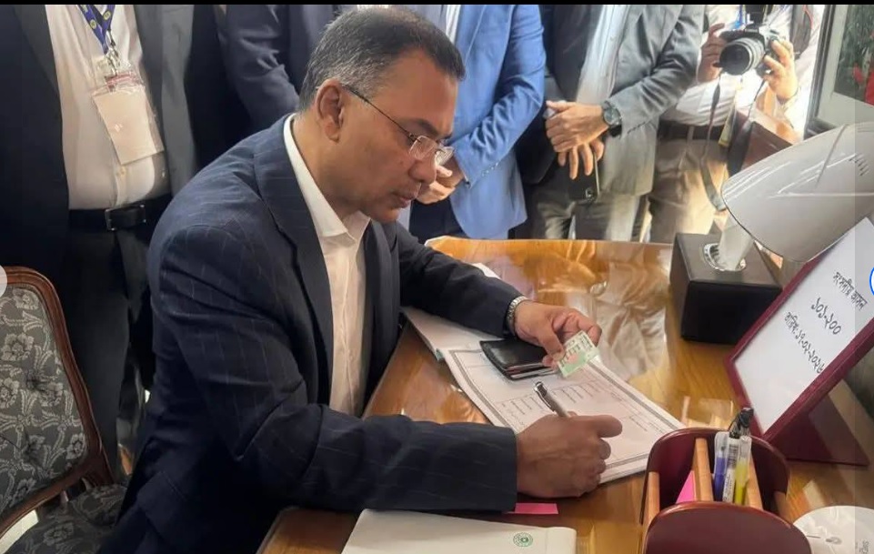 বিএনপির চেয়ারম্যান তারেক রহমান প্রধানমন্ত্রী হিসেবে শপথ নিয়েছেন। মঙ্গলবার বিকেলে জাতীয় সংসদ ভবনের দক্ষিণ প্লাজায় আয়োজিত অনুষ্ঠানে রাষ্ট্রপতি মোহাম্মদ সাহাবুদ্দিন তাঁকে শপথ পড়ান। শপথ শেষে রাষ্ট্রপতি ও প্রধানমন্ত্রী করমর্দন করেন।