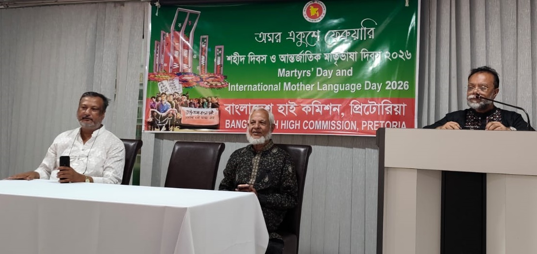 দক্ষিণ আফ্রিকার প্রশাসনিক রাজধানী প্রিটোরিয়া-এ বাংলাদেশ হাইকমিশনে যথাযোগ্য মর্যাদা ও ভাবগাম্ভীর্যের মধ্য দিয়ে মহান শহীদ দিবস ও আন্তর্জাতিক মাতৃভাষা দিবস-২০২৬ পালিত হয়েছে।