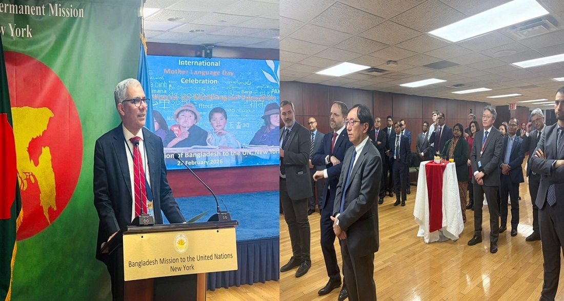 যথাযোগ্য মর্যাদা ও ভাবগাম্ভীর্যের সঙ্গে জাতিসংঘে বাংলাদেশ স্থায়ী মিশনের উদ্যোগে মহান শহীদ দিবস ও আন্তর্জাতিক মাতৃভাষা দিবস-২০২৬ পালিত হয়েছে। নিউইয়র্ক সময় বিকাল সাড়ে ৪টায় ভাষা শহীদদের স্মরণে আয়োজিত আলোচনা সভায় প্রধান অতিথি ছিলেন জাতিসংঘের সাধারণ পরিষদ ও সম্মেলন ব্যবস্থাপনা বিষয়ক আন্ডার-সেক্রেটারি-জেনারেলের কার্যালয়ের প্রধান অ্যান লাফেবার।
